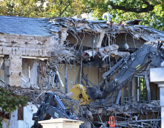 History is being rewritten on the White House grounds, where a new formal ballroom is rising in place of the East Wing. The